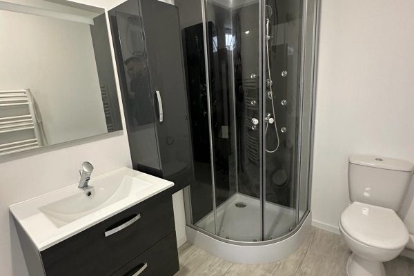 Elle se compose d’un séjour lumineux, d’une cuisine fonctionnelle aménagée et équipée, d’une salle d’eau avec w-c, ainsi que d’un grand palier pouvant faire office de bureau desservant une chambre confortable.